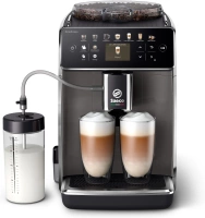 Ekspres ciśnieniowy Saeco 1400W wytwarzający ciśnienie o mocy 15 Bar. Posiada funkcje: Spienianie mleka, Regulacja mocy kawy. Możliwa regulacja: Ilość kawy, Moc kawy